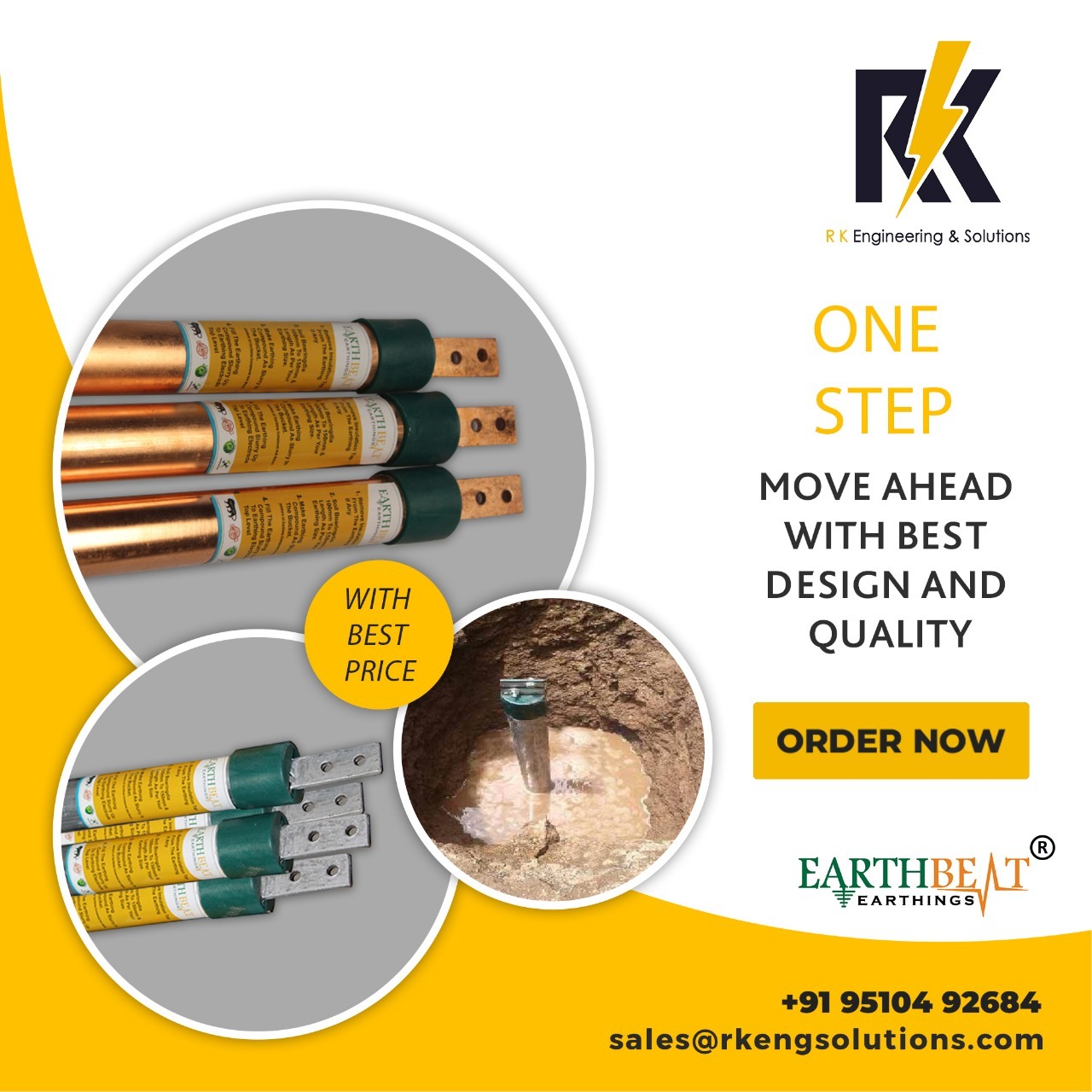 R K Engineering & Solutions is a trusted manufacturer and supplier of high-performance Copper Bonded Earthing Electrodes in India. Our premium brand EARTHBEAT ensures maximum safety by protecting electrical systems against shocks, surges, and lightning strikes for industrial, commercial, and residential applications.